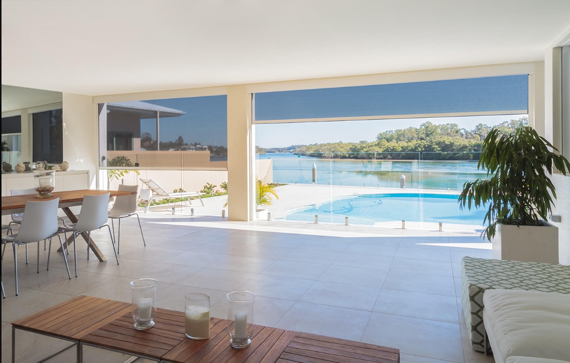 Outdoor Shading ZipScreen & Cable Guided Systems Residential - Commercial - Hospitality - Contract Motorization by RollEase Acmeda & Somfy Zipscreen is the ultimate external screening solution for any outdoor area or window. Specially designed for alfresco entertaining areas such as pergolas, verandas, garages and balconies, it offers privacy and protection from the sun, wind, rain, and insects all year round. Also ideal for home and office windows, it is a sleek, secure, and durable alternative to traditional awnings & outdoor roller shutters. Your custom-designed system can be made in widths of up to 23' and drops up to 16', offering you an external solution to fit almost any area.
