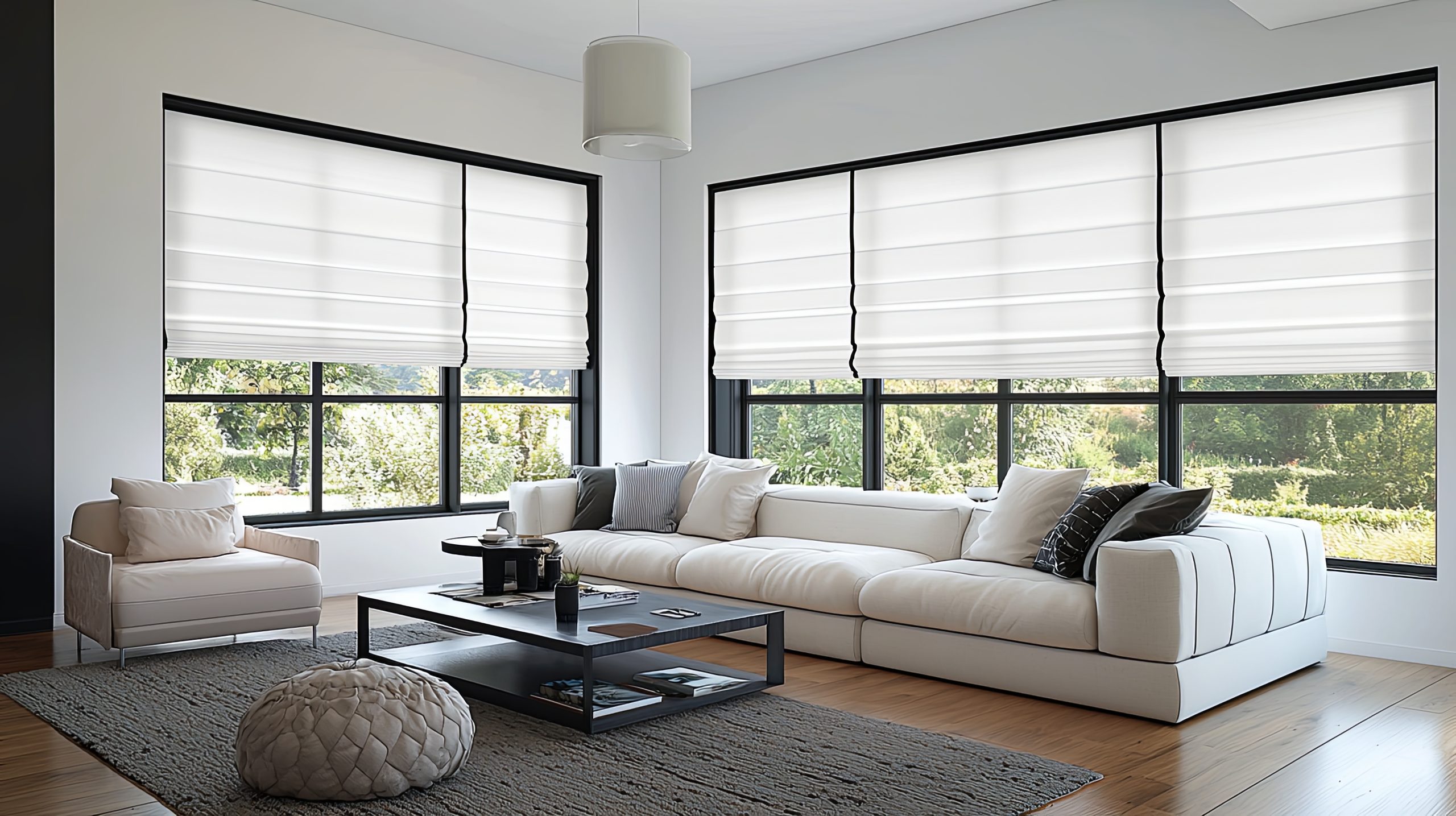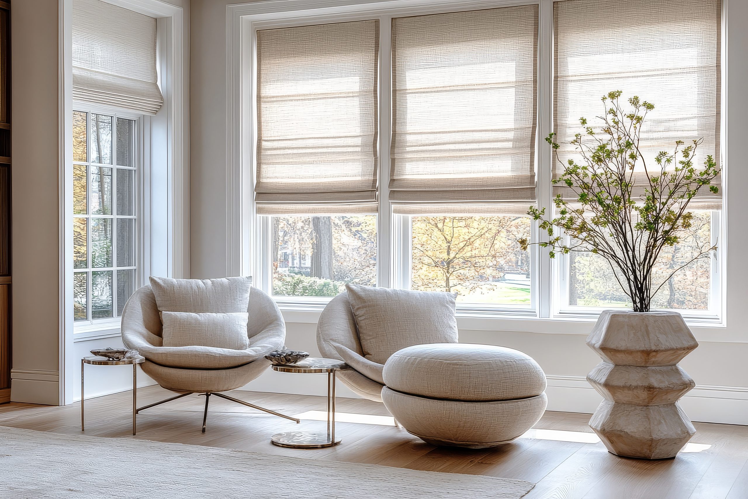 Our Roman Shades collection combines classic elegance with modern functionality, offering a variety of fabrics in light-filtering and blackout options to create the perfect mood in any room. These shades not only add beauty to your space with their soft folds and clean lines, but they also offer practical benefits. Our high-quality fabrics help filter natural light, reduce glare, and block a large amount of harmful UV rays—protecting your floors and furniture from fading. Plus, blackout fabric options can provide extra insulation, helping keep your home more comfortable year-round.